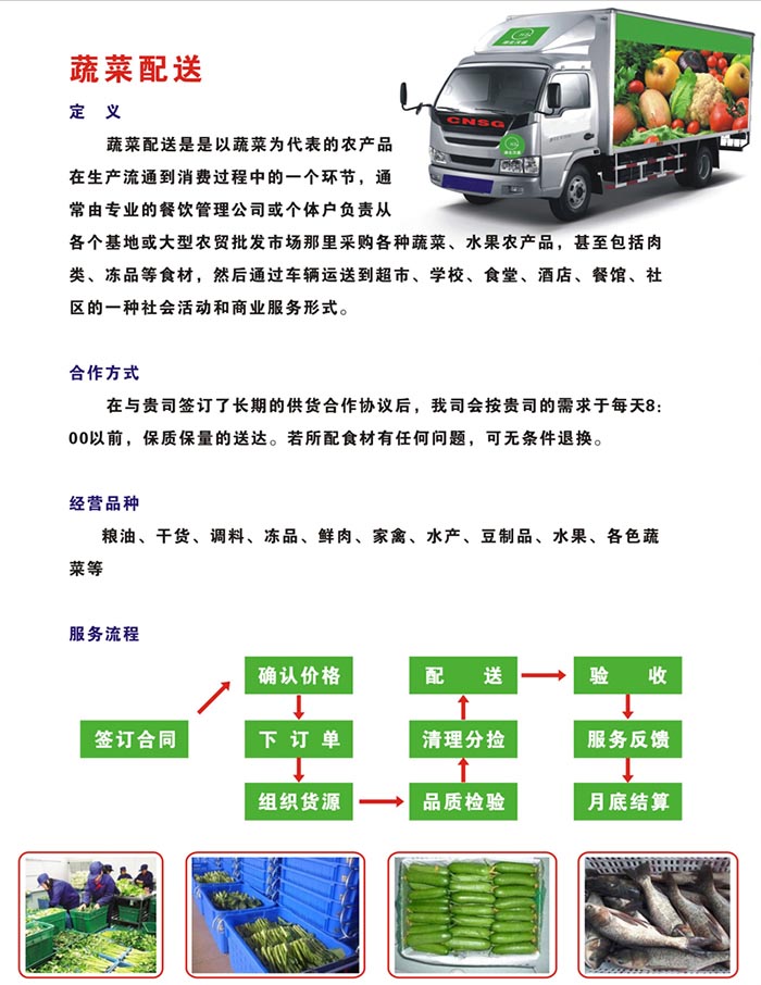 中膳餐飲管理公司長期為學(xué)校、工廠、醫(yī)院、機關(guān)食堂等提供蔬菜、農(nóng)副食品配送服務(wù),我們保證以下幾點: